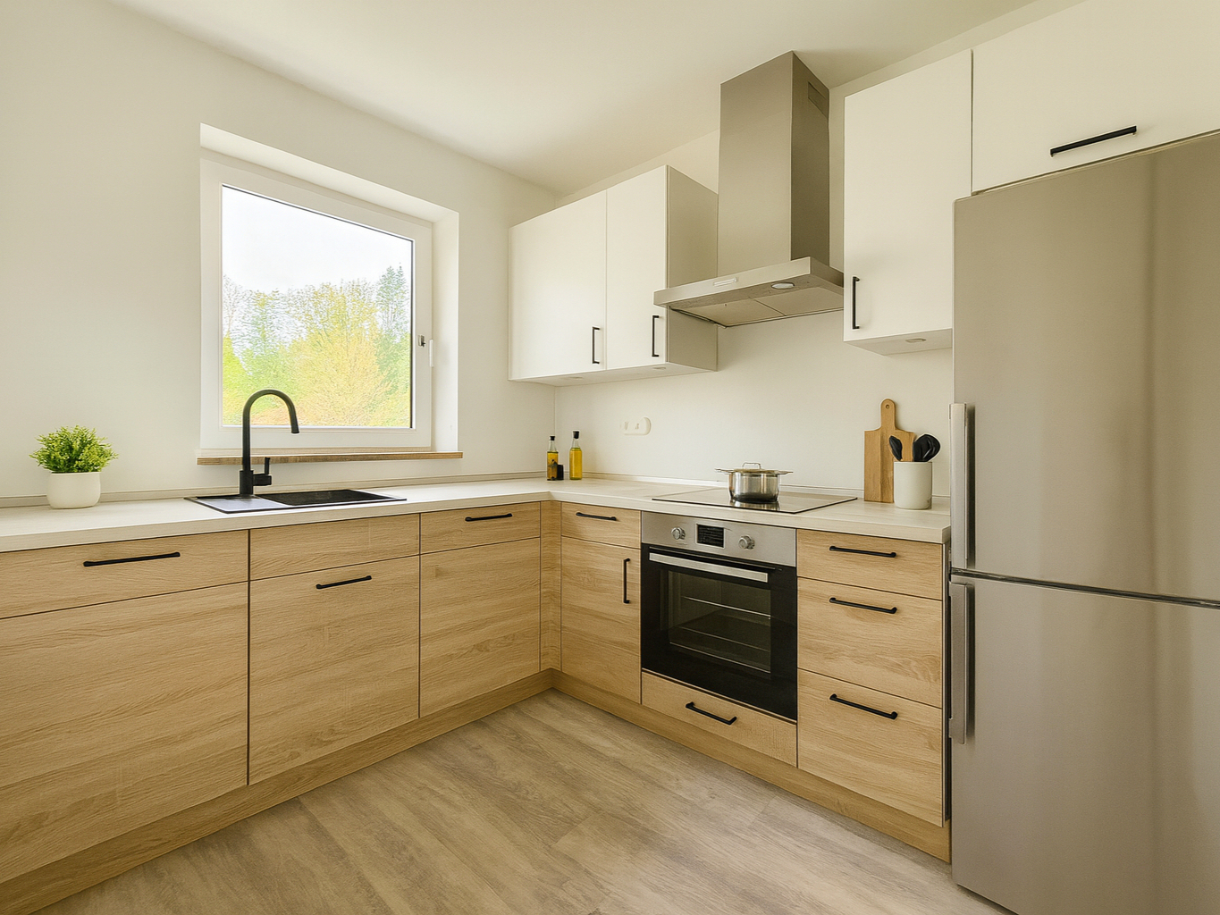 Der Bodenbelag aus hochwertigen Fliesen sowie Laminat sorgt für ein angenehmes und stilvolles Wohnambiente. Die Wohnung verfügt zwar über keine eigene Einbauküche, bietet Ihnen jedoch die perfekte Gelegenheit, Ihre ganz persönliche Küchengestaltung zu verwirklichen.