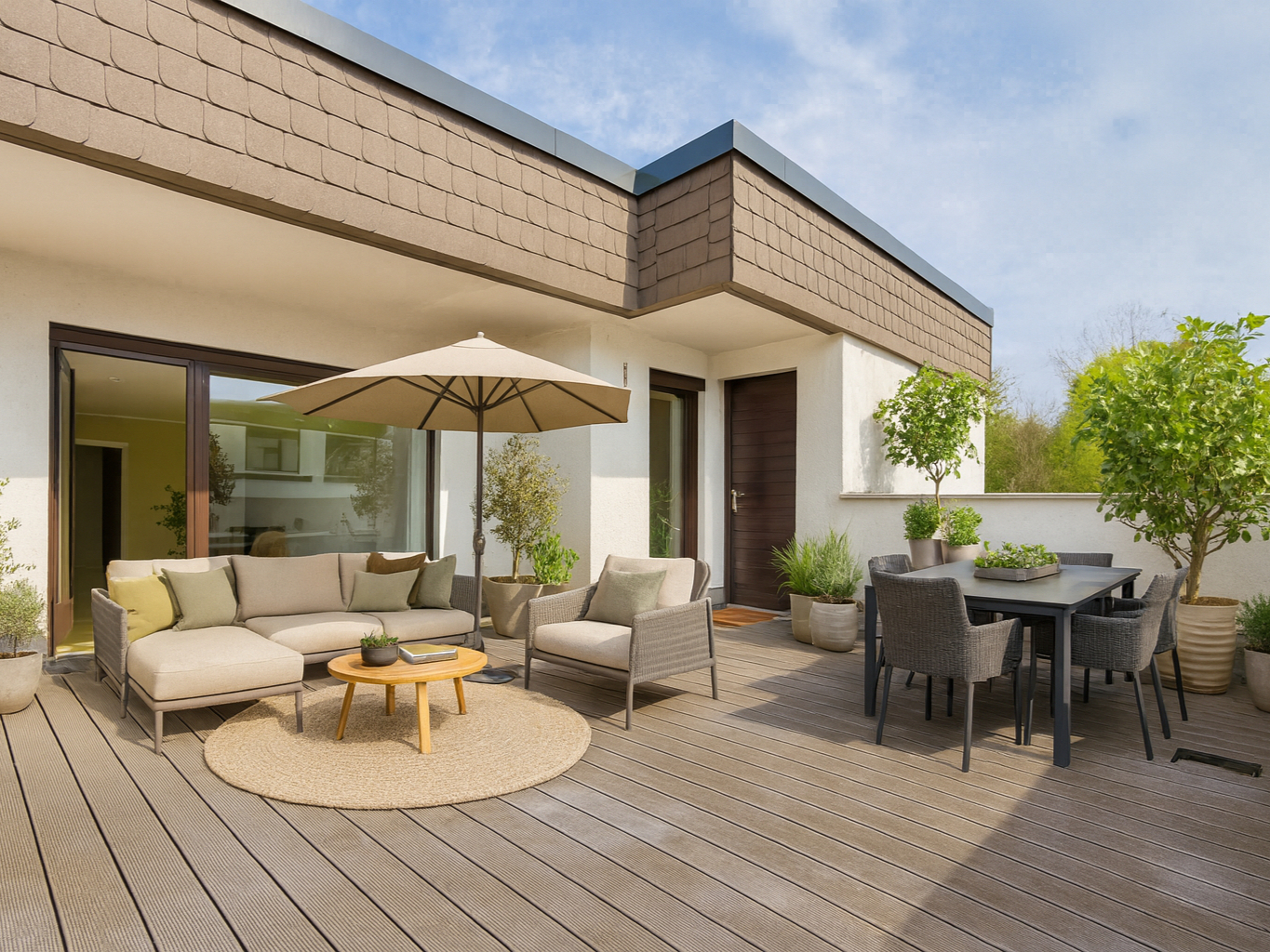 - moderner und offener Wohnbereich mit direkten Zugang zur Terrasse
