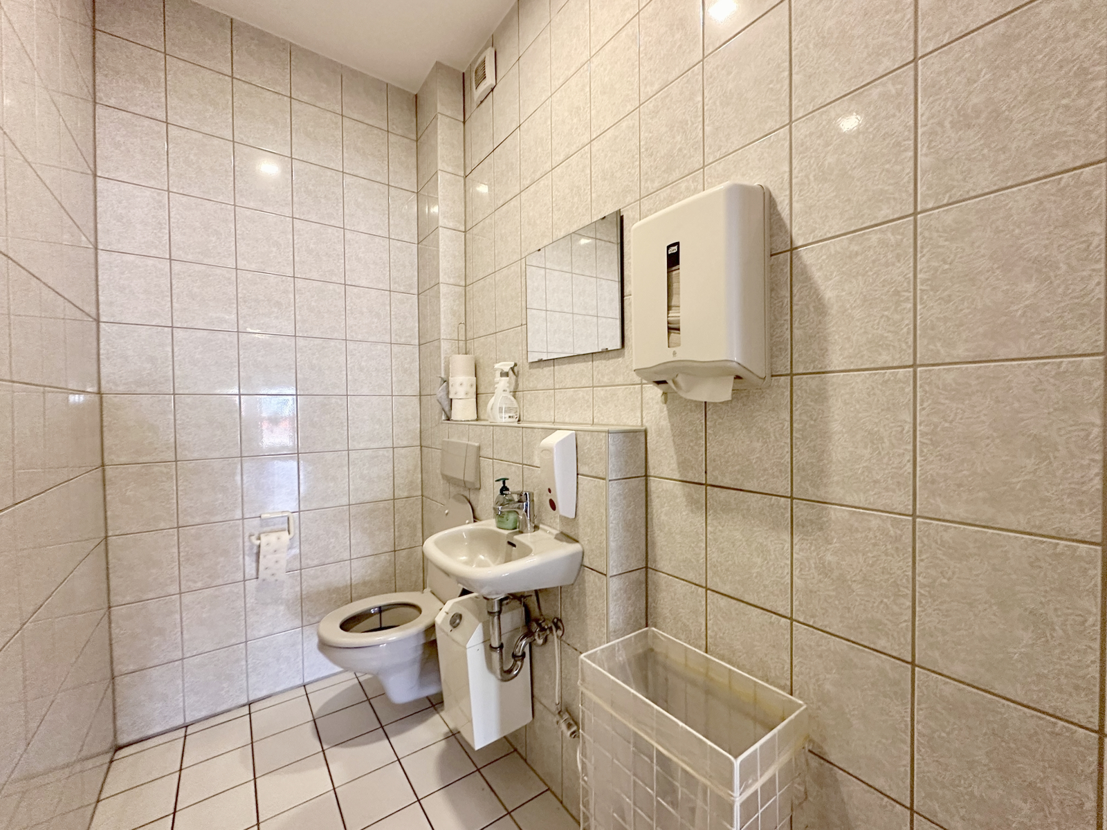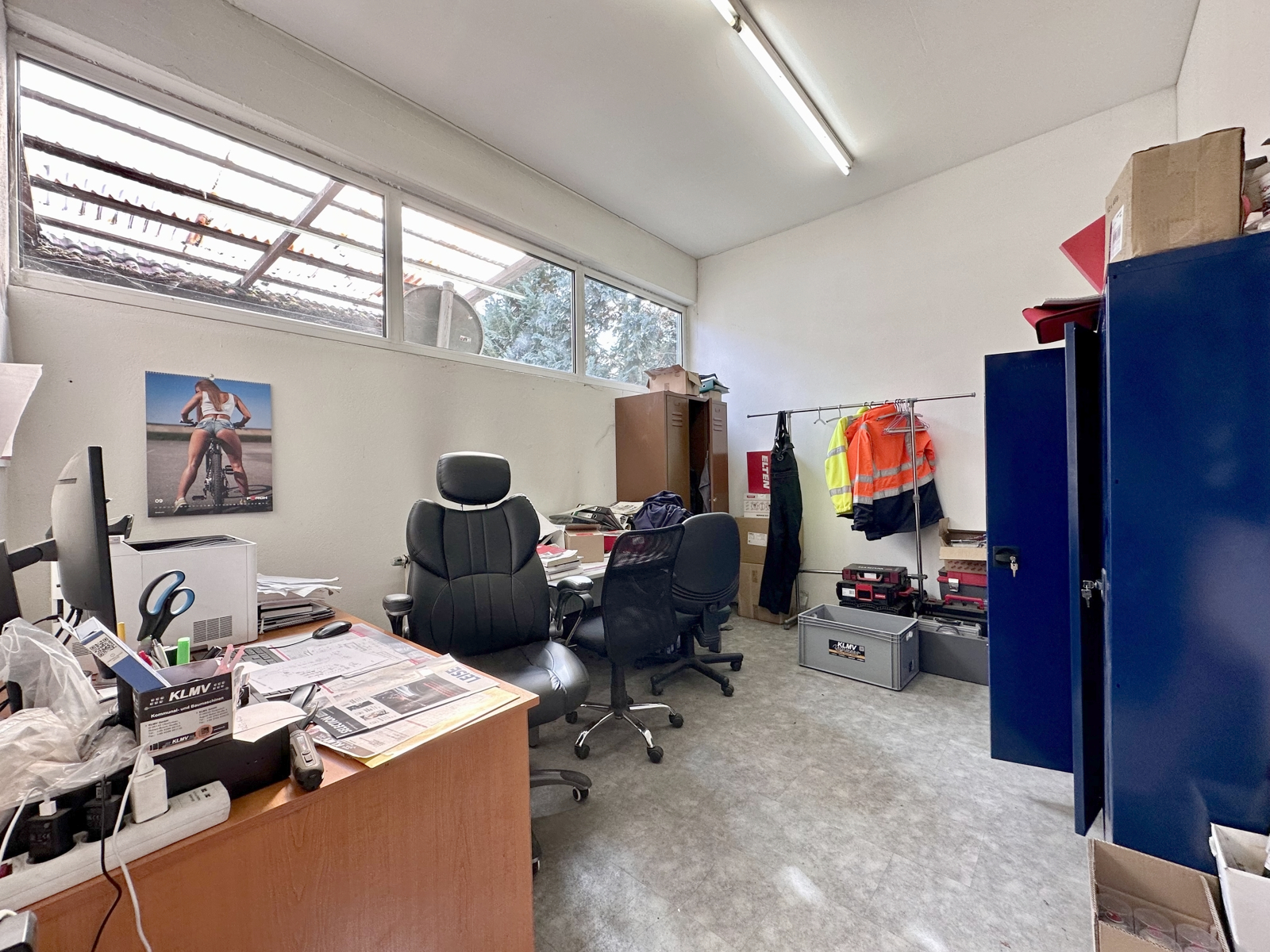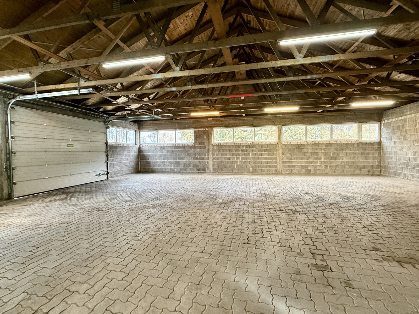 Die Halle beeindruckt durch ihre hervorragende Raumaufteilung, die sowohl eine gemeinsame als auch separate Nutzung der zwei Hallen erlaubt. Zudem stehen Ihnen ein ansprechender, separater Eingangsbereich für Kunden, ein modernes Großraumbüro, drei zusätzliche kleine Büros und getrennte Toiletten zur Verfügung, was ein hohes Maß an Flexibilität bietet. Ein weiterer großer, heller Raum wird derzeit für Lagerzwecke verwendet und kann ohne Probleme ebenfalls als weiteres Büro genutzt werden.