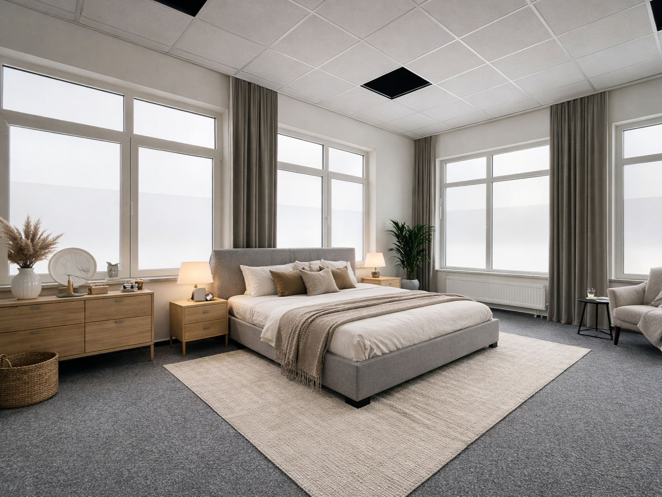 Großzügige Fensterflächen sorgen für eine angenehme, lichtdurchflutete Atmosphäre und schaffen beste Voraussetzungen für ein modernes Wohnkonzept. Die vorhandenen Bodenbeläge aus Teppich und Fliesen unterstreichen den gepflegten Zustand und lassen sich problemlos in eine wohnliche Nutzung integrieren.