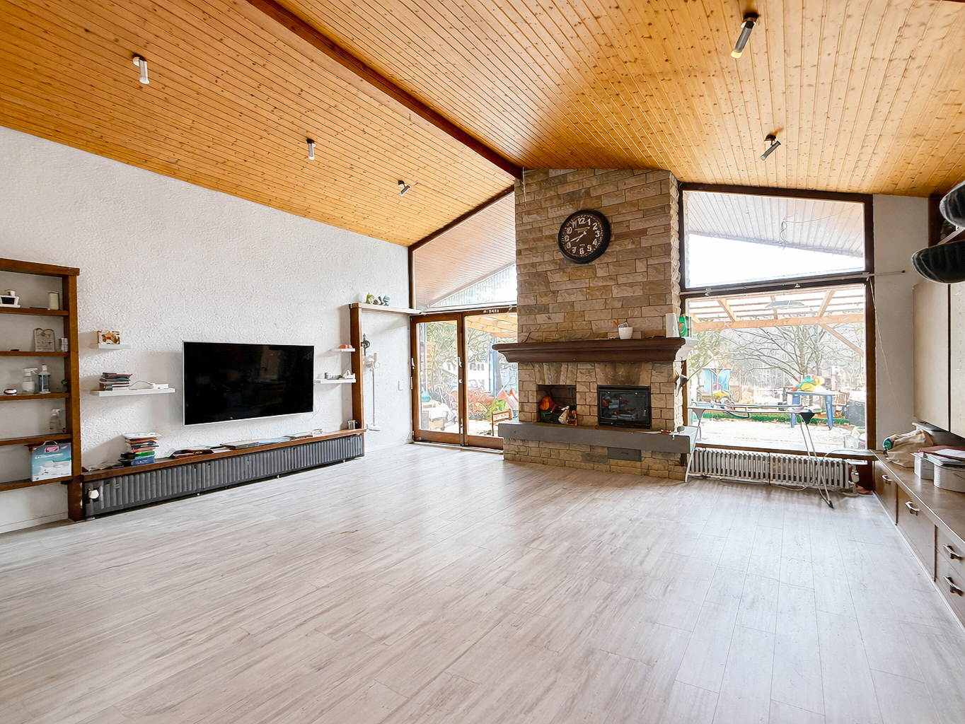 Ein besonderes Highlight ist der Kamin im Wohnbereich mit zusätzlicher Nutzungsmöglichkeit im Außenbereich, der insbesondere in der kühleren Jahreszeit eine behagliche Atmosphäre schafft. Die Terrasse erweitert den Wohnraum ins Freie und lädt zu entspannten Stunden, Grillabenden oder geselligen Zusammenkünften im eigenen Garten ein.