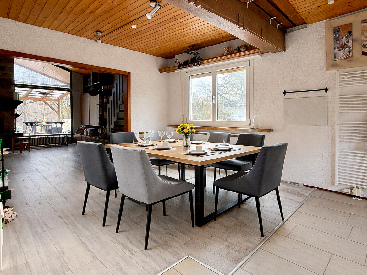 - Einliegerwohnung im Untergeschoss: Voll unterkellert und teilweise ausgebaut – perfekt für Vermietung, Gäste, Homeoffice oder erwachsene Kinder.
