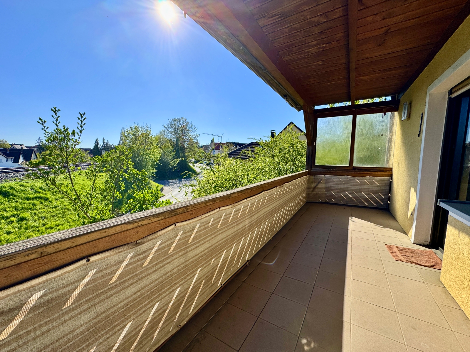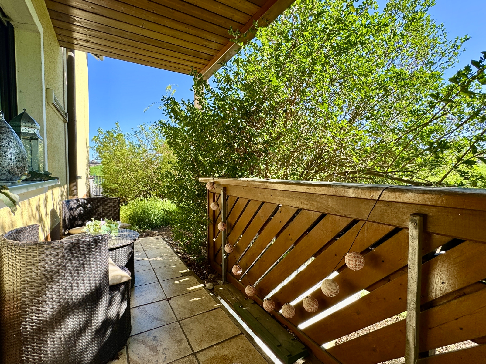 - großzügige Außenbereiche: Terrasse mit Gartenzugang im EG, überdachte Balkone in OG und DG sowie vermietete Garage (55 €/Monat)