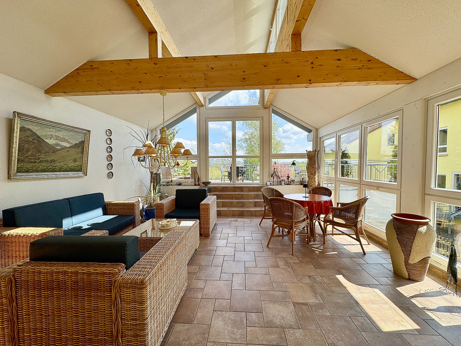 Lichtdurchflutet, beheizt und mit einem Ausblick, der jeden Morgen zum besonderen Moment macht – dieser Wintergarten ist das Herzstück der Immobilie und wird schnell zu Ihrem Lieblingsplatz.