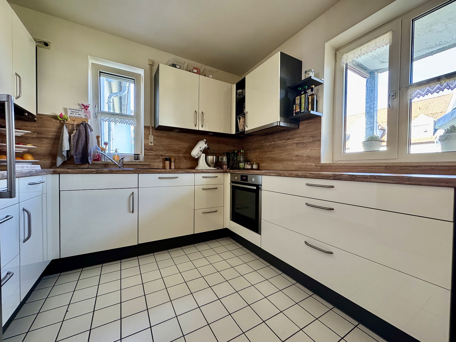 Die Böden sind mit pflegeleichten Fliesen im Bad und PVC in den Wohnräumen belegt – eine solide Basis, die nach individuellem Geschmack weiter gestaltet werden kann. Die vorhandene Küche kann nach Absprache von den aktuellen Mietern übernommen werden, was den Einzug zusätzlich erleichtert.