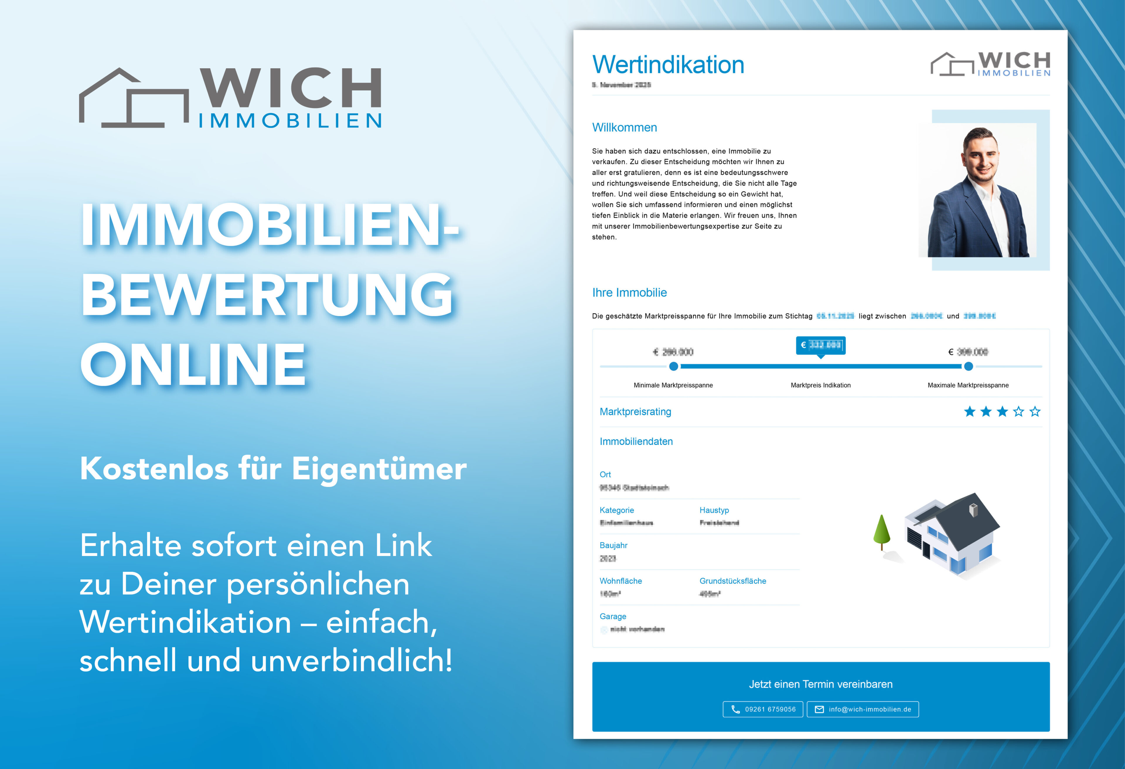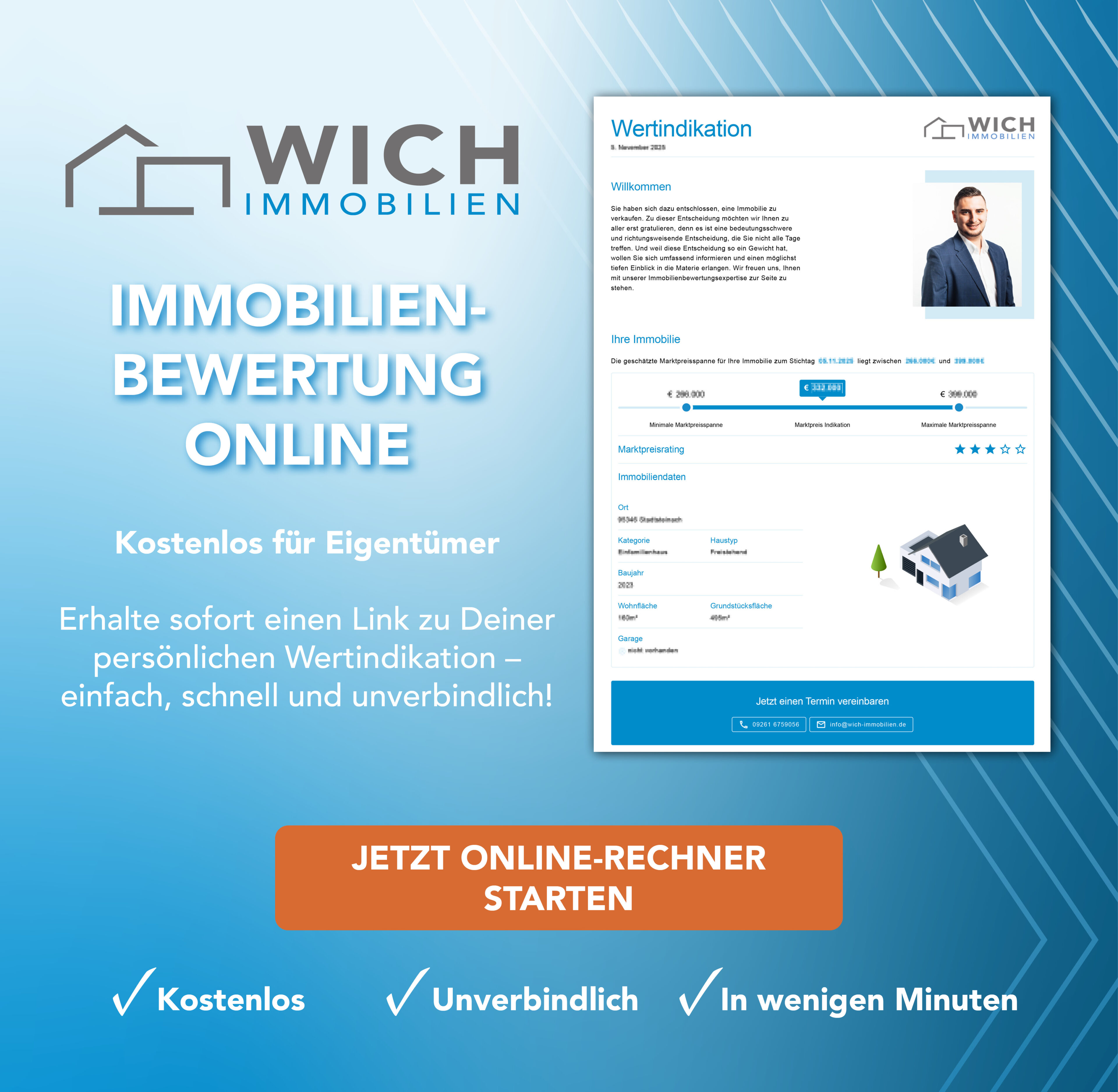 In nur 3 Minuten erhältst du mit unserem Bewertungstool eine aussagekräftige Bewertung deiner Immobilie.